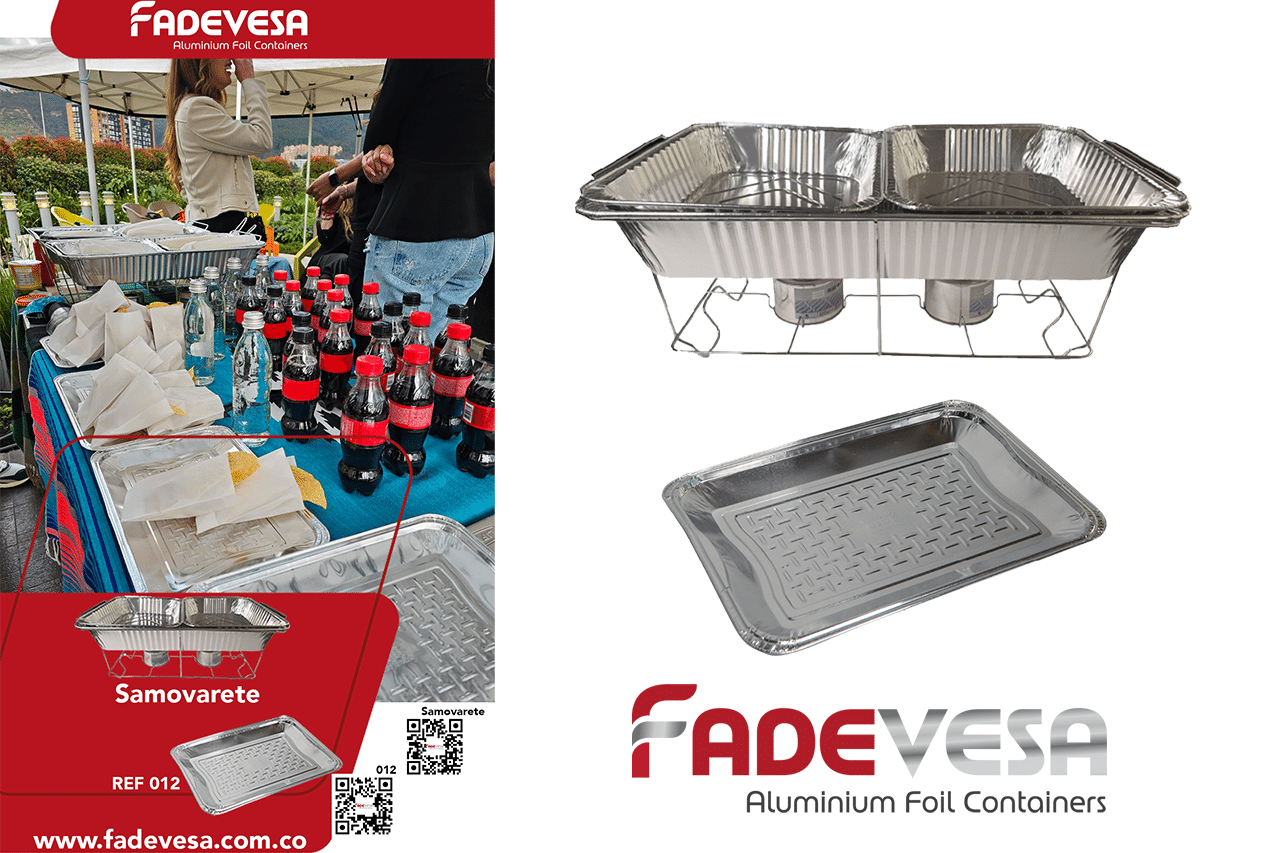En FADEVESA, fabricamos recipientes y cacerolas de aluminio diseñados para satisfacer las más altas exigencias de calidad. Nuestros productos, como el Samovar para comidas calientes y la bandeja para picar 012, son resistentes, sostenibles y perfectos para garantizar la frescura y seguridad de tus alimentos. ¿Listo para llevar la conservación y presentación de tus productos al siguiente nivel? Visítanos en fadevesa.com.co y descubre por qué nuestros empaques son la elección preferida por negocios y hogares.