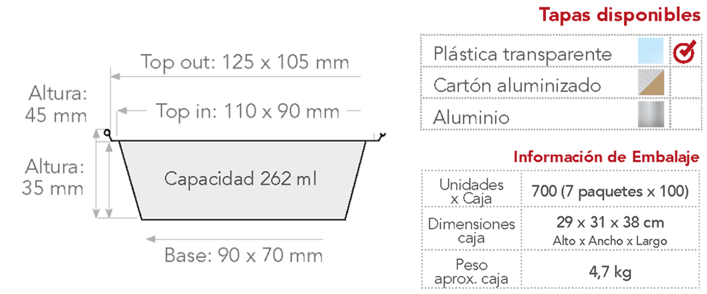 Minimolde de papel aluminio 250 Gramos para pequeñas porciones como POSTRES, disponible con tapa de cartón o de plástico.
