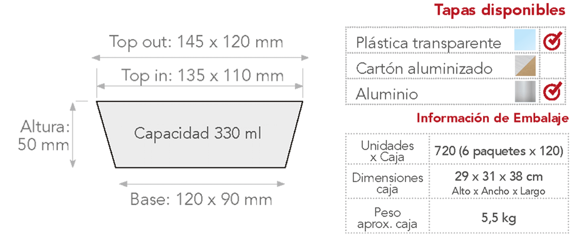 Cacerola de papel aluminio panda 14.5 x 12 X 3 cms 280 gramos disponible con tapa de ALUMINIO y PLÁSTICO ideal para pequeñas porciones y la VERDADERA LASAÑA JR.