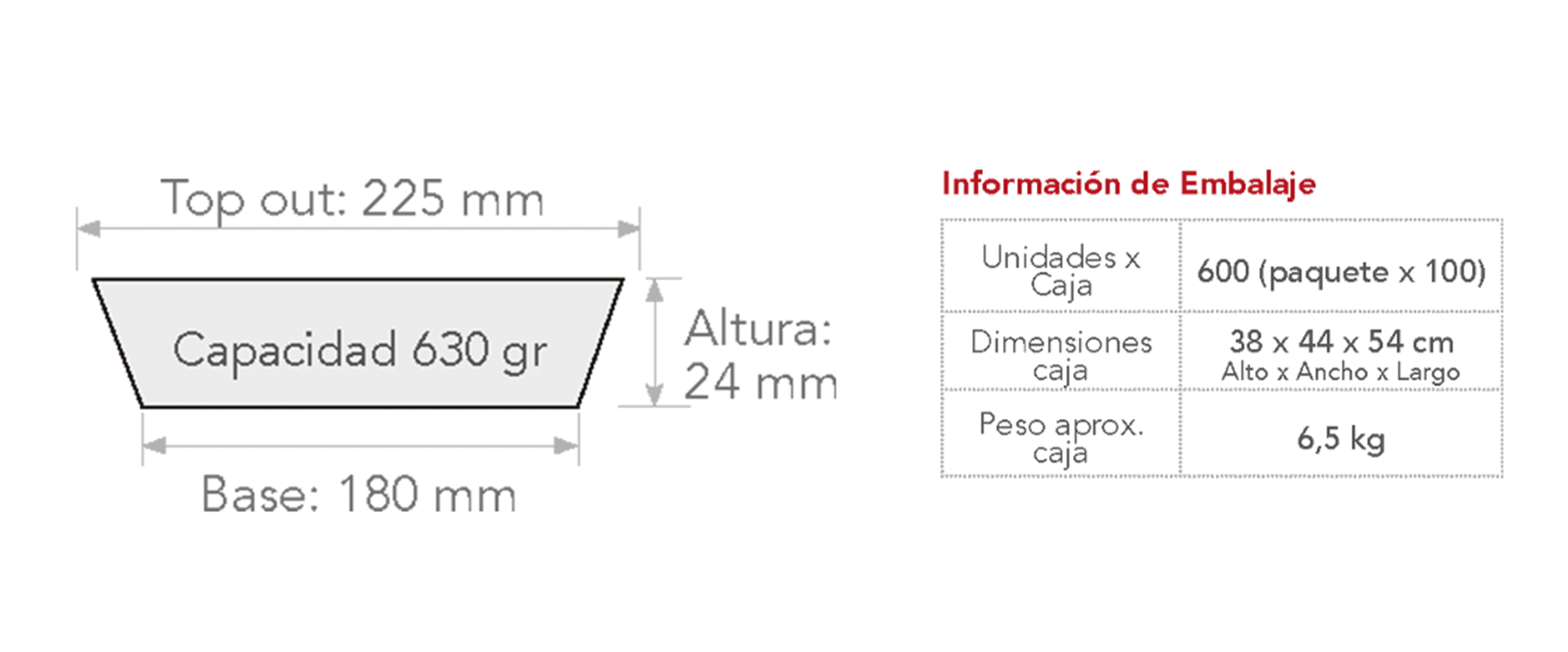 Plato de papel papel aluminio 22.5 cms x 2.4 cms Capacidad: 630 gramos. Ideal para tortas, pies etc. OPCIONAL: disponible tapa domo transparente.