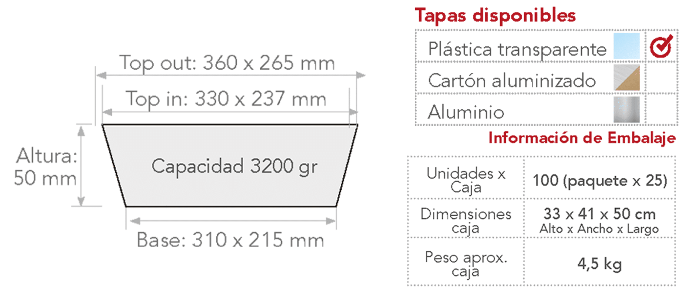 Bandeja de papel aluminio postres grande 37 x 27 cms 3.200 gramos ideales para grandes porciones de postres , PAELLAS, carnes, etc. Disponible con tapas plasticas.