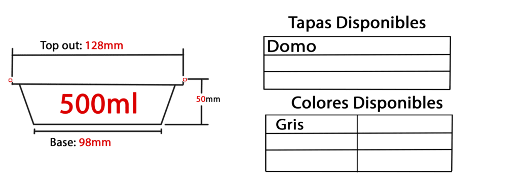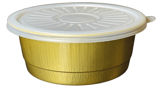 EXLUSIVO BOWL de papel aluminio REF.SW562 de 128 MM diametro x 50 mm de altura. Capacidad: 500ml. con tapas DOMO transparentes para comidas frias Y OPACA plana comidas calientes (sopas).